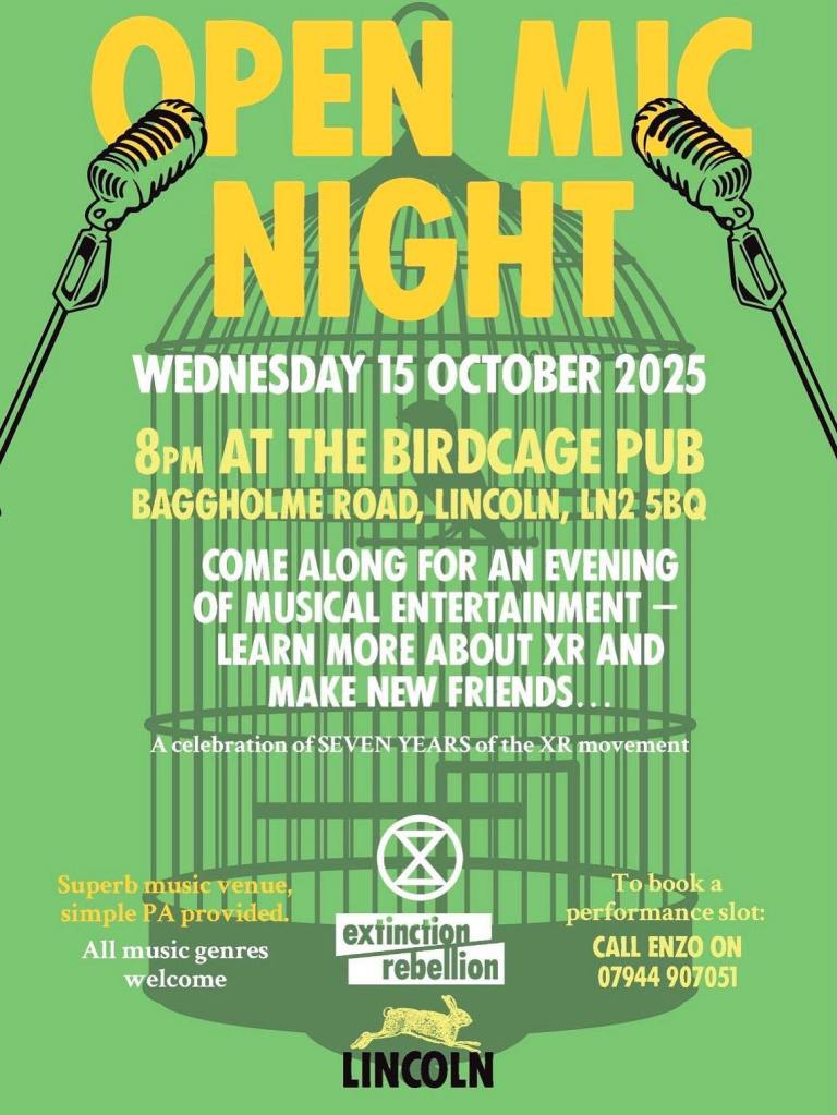 Next Zoom General meeting: 21.01.26 at 7.00pm. Email lincoln@extinctionrebellion.uk for link or see Extinction Rebellion Lincolnshire supporters group on Facebook